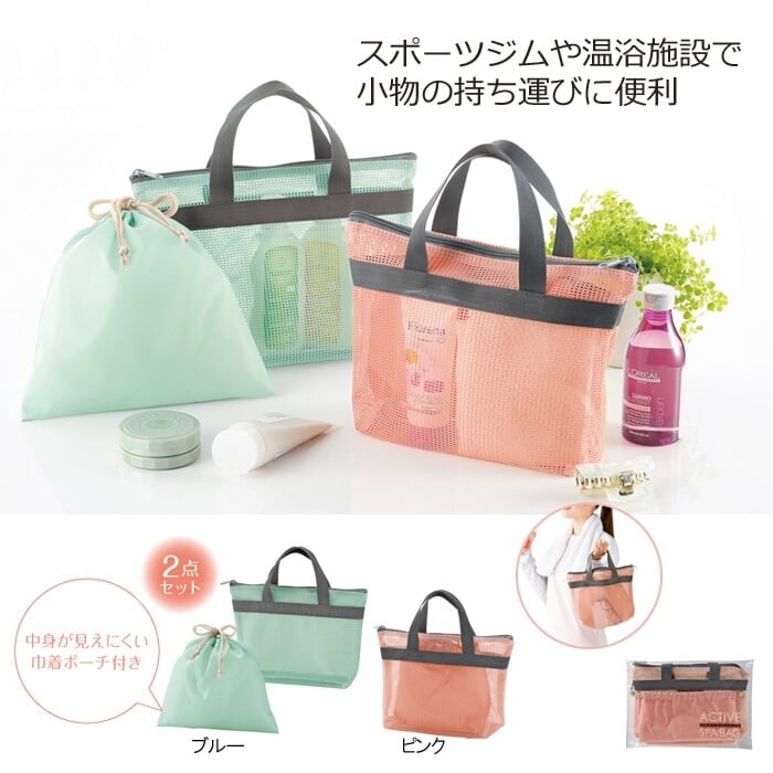 スポーツジムや温浴施設で小物の持ち運びに便利。
