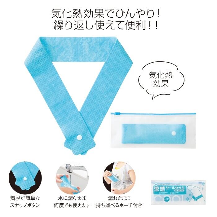 水に濡らせば何度でも使えて便利な涼感クールタオルです。