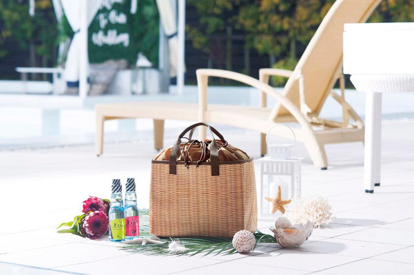 まるで本物のカゴバッグかのようなデザインに仕上げた、ラタンプリントビッグトート。