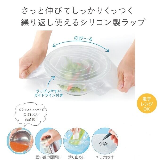 さっと伸びてしっかりくっつく!繰り返し使えるシリコン製ラップ。