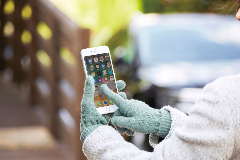着けたままスマートフォンが使えるふんわりニットの手袋です。