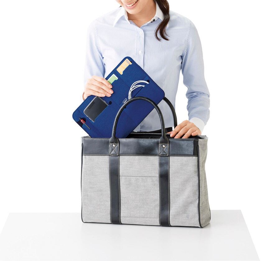 フラットなバッグインバッグで鞄の中を使いやすく整理。