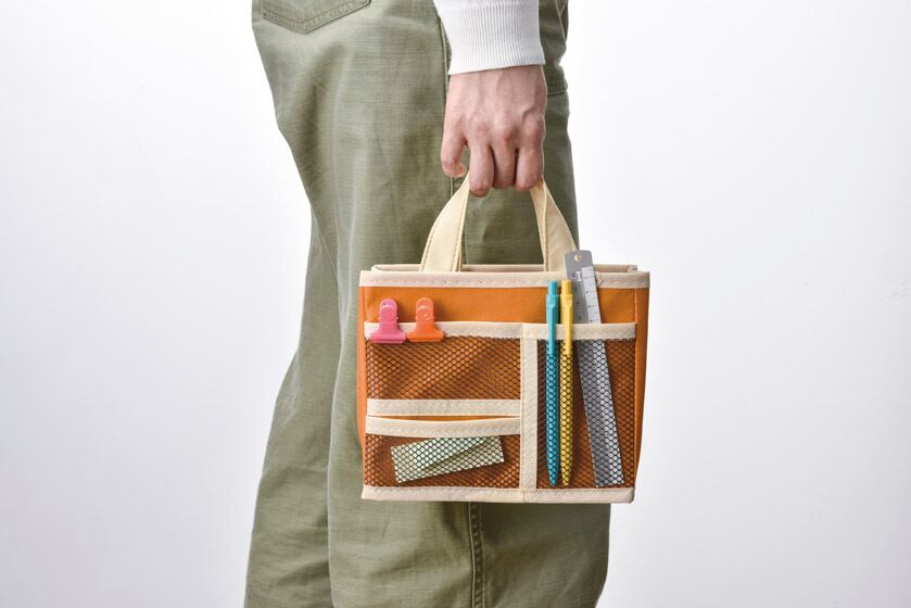 バッグの中の整理整頓に役立つ、自立するバッグインバッグです。