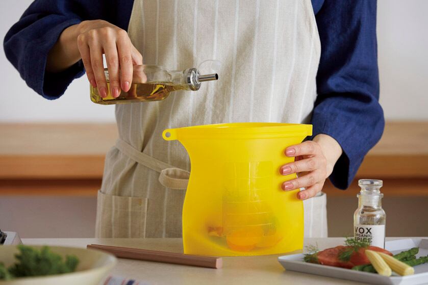 丈夫で衛生的なシリコン製の調理も保存もできる便利な保存バッグです。