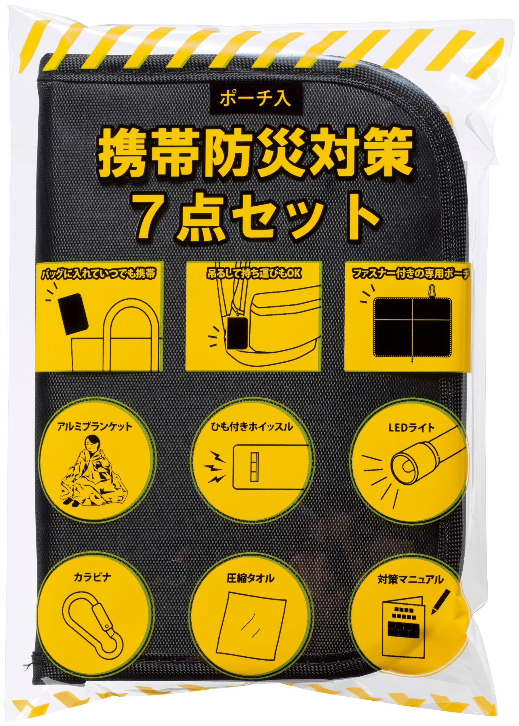カバンに入るコンパクトサイズの防災対策用品7点セット。
