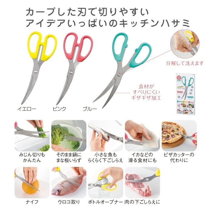 これは便利!キッチンカーブはさみ&十徳キッチンハサミ 2点セット