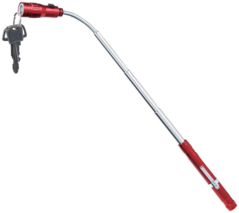 ライト先端部のマグネットに金属がくっつく!暗くて狭い隙間などに落としたものを取るのに便利。フレキシブルアーム&スライドシステムで伸縮自在のスマートライトです。