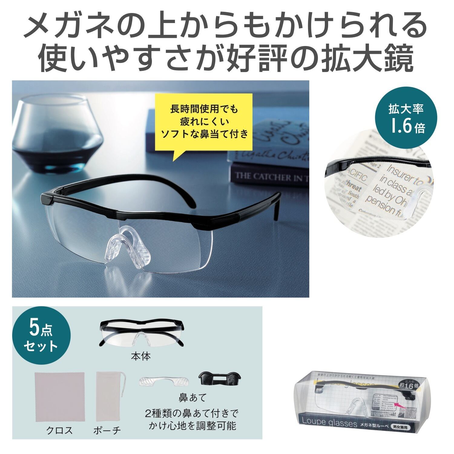 メガネの上からも掛けられて使いやすい拡大鏡。