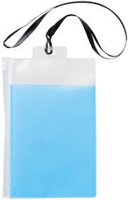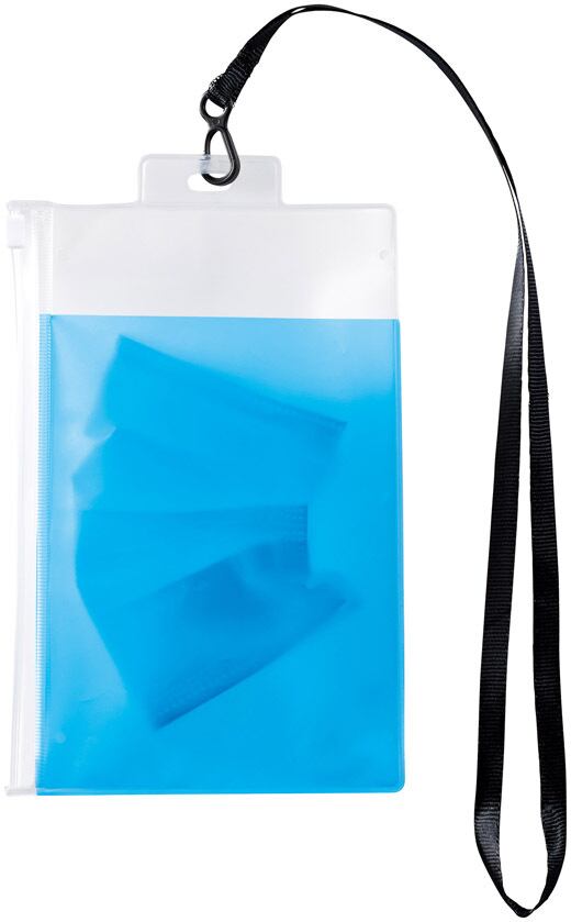 マスクを収納して携帯できるネックストラップ付きポーチ。