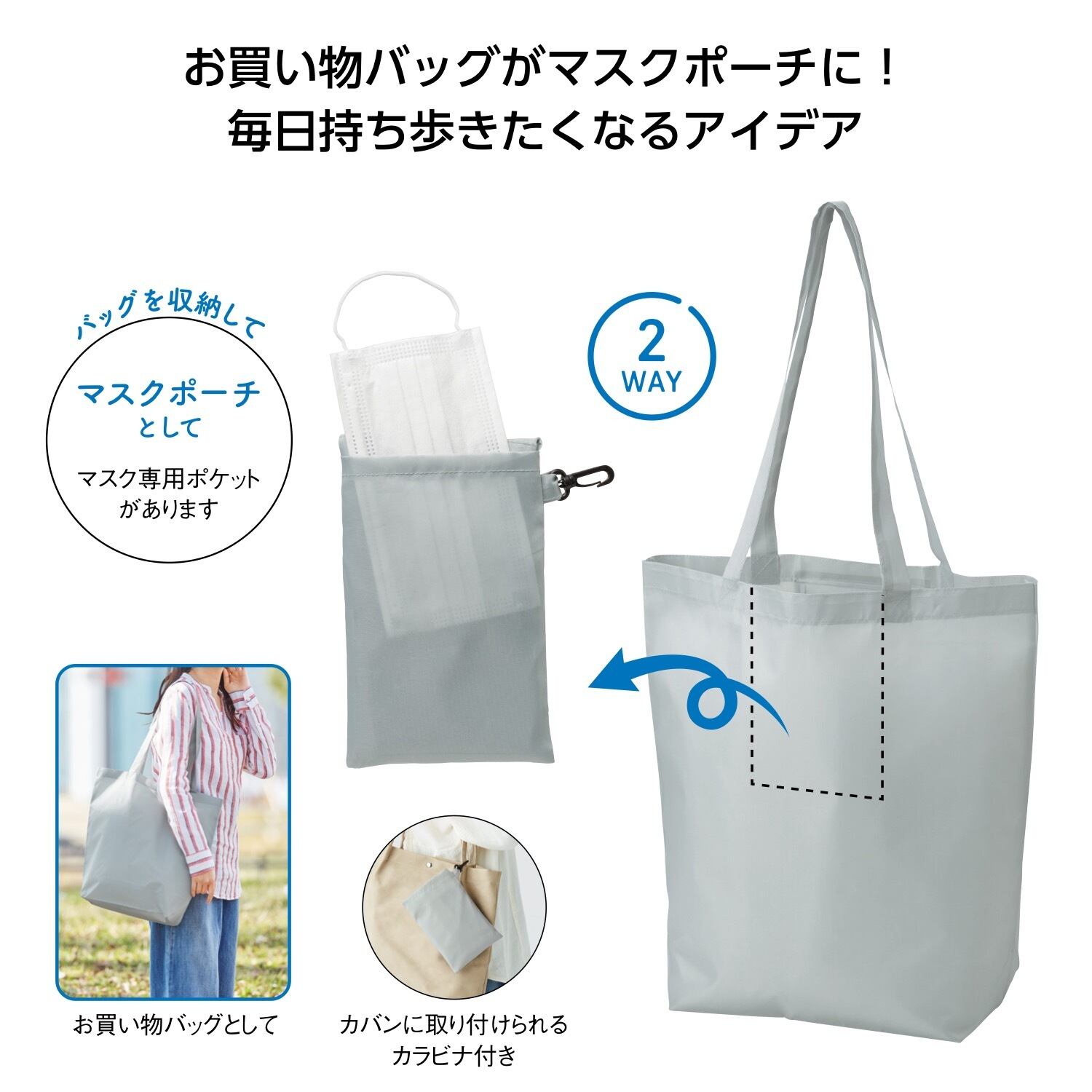 マスク専用ポケット付き!マスクポーチになる抗菌カラビナ付きトートバッグ