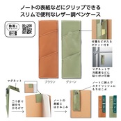 ノートの表紙などにクリップできるスリムで便利なレザー調ペンケース。
