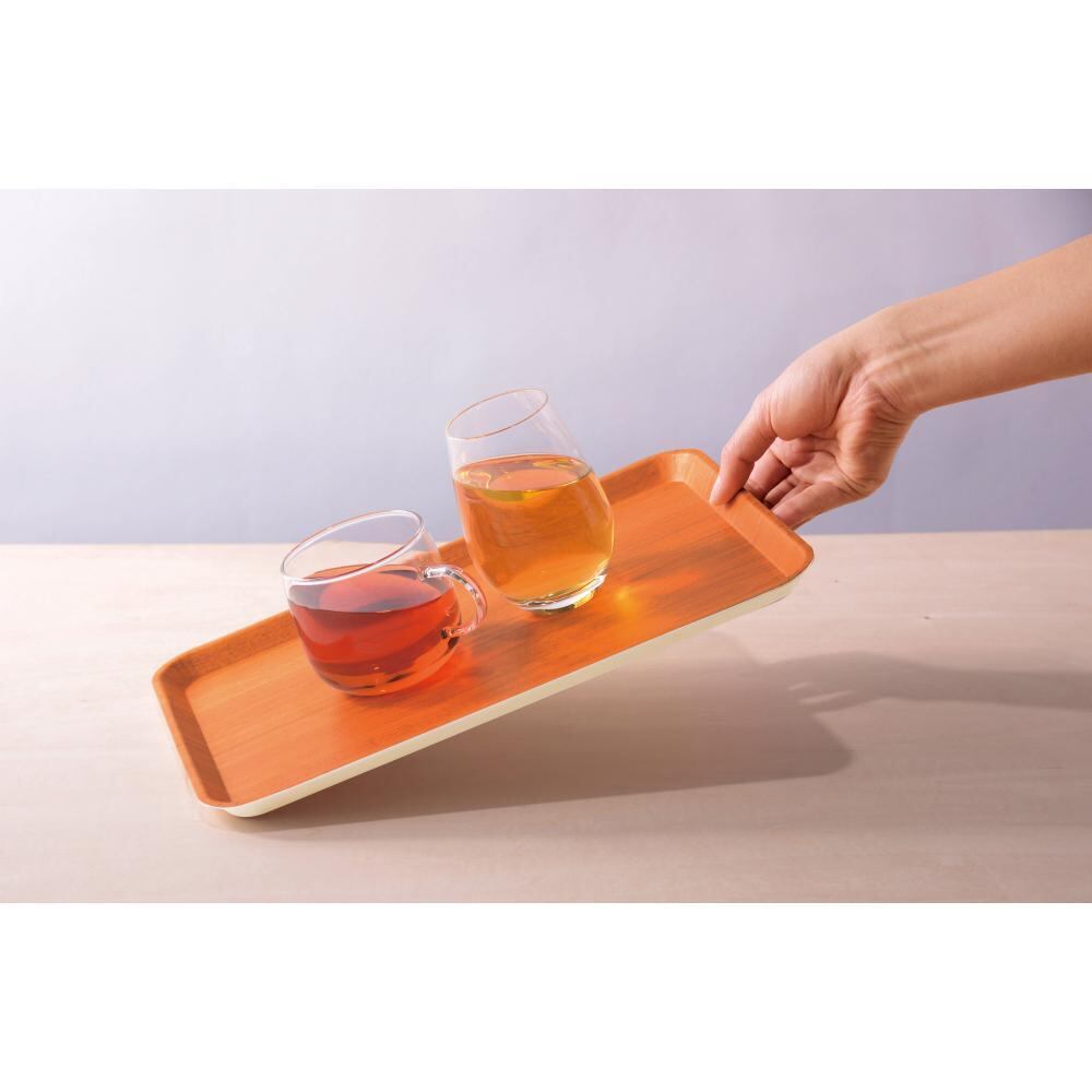 表面の特殊な塗装で食器がすべりにくく安心!シニアやお子さまにも扱いやすいお盆です。