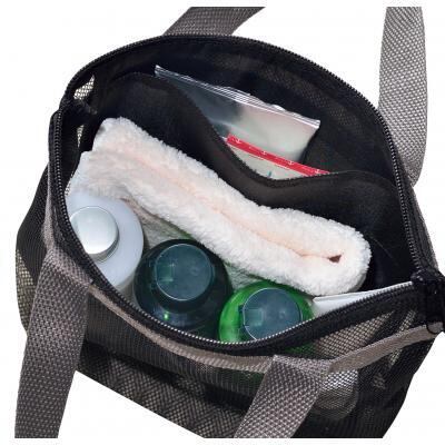 スパやジムで快適に使える全面メッシュ素材。通気性と収納力も抜群です。