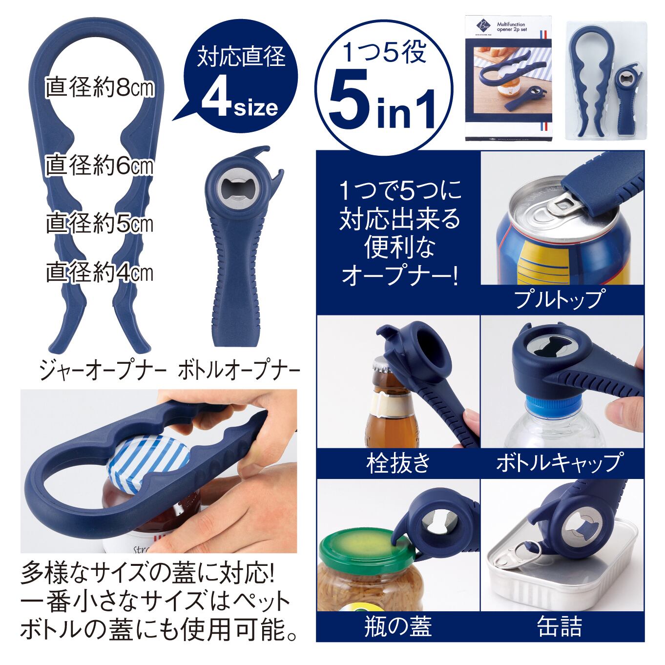 様々なサイズの蓋や缶詰の開封、栓抜きを、爪や手を傷つけず誰でも容易に開けられます。