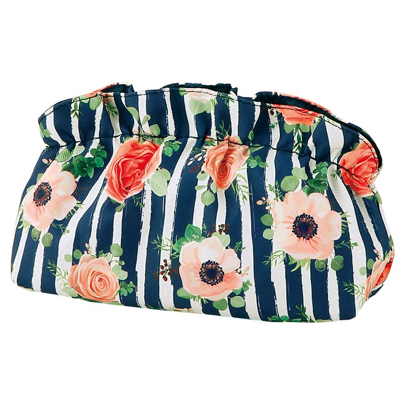 ストライプ花柄シェルポーチ