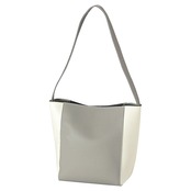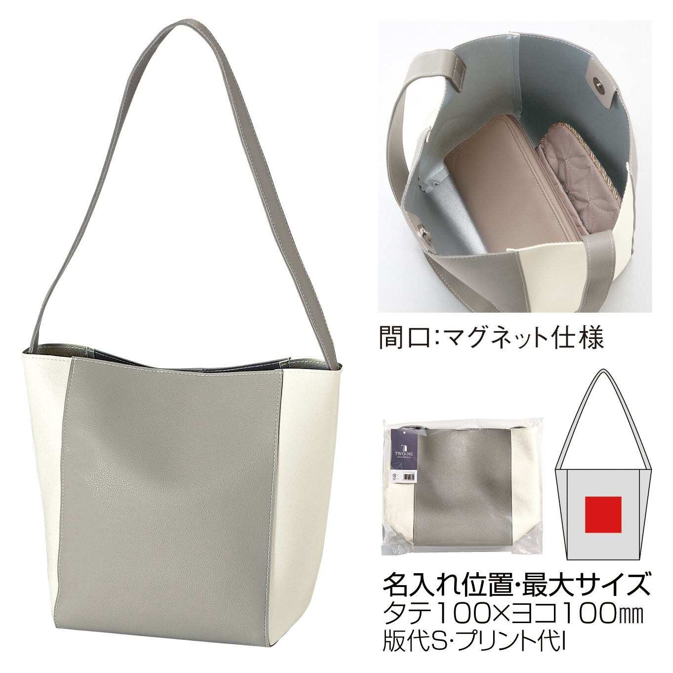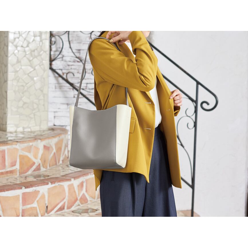 グレー×ホワイトの大胆な配色が目を引く、洗練されたショルダーバッグ。