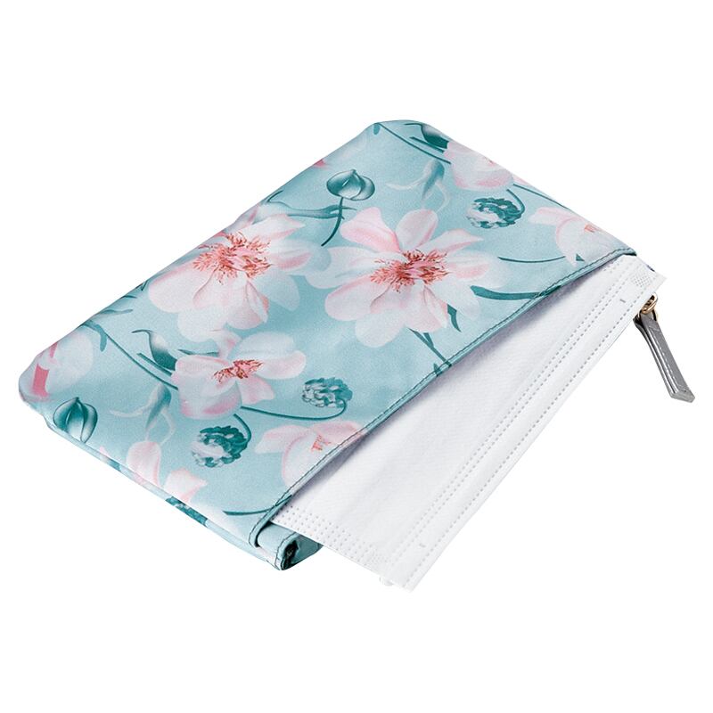 フラワー柄 ポケット付きフラットポーチ(抗菌加工)