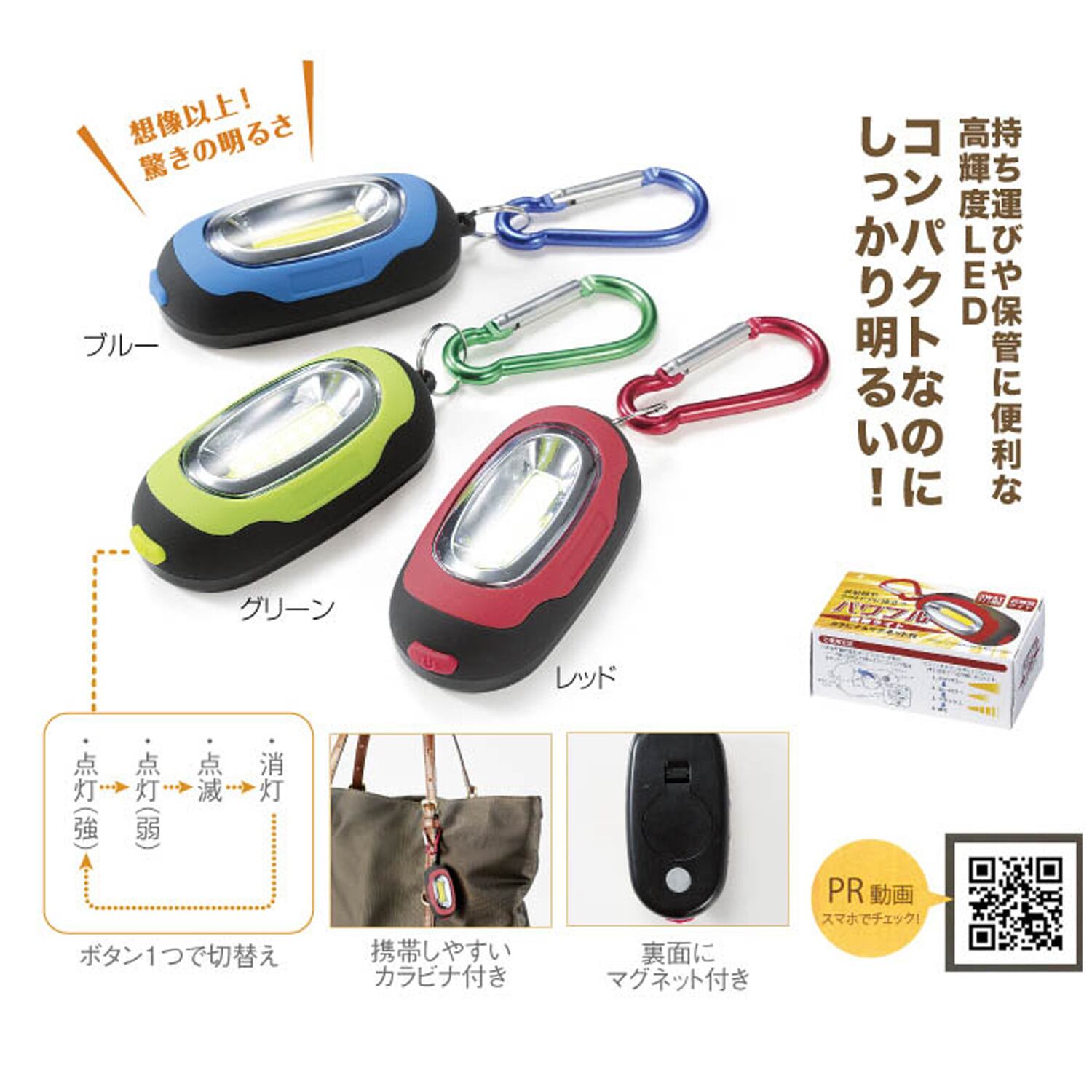 非常時やアウトドアに!高輝度LEDコンパクトライト!カラビナ&マグネット付