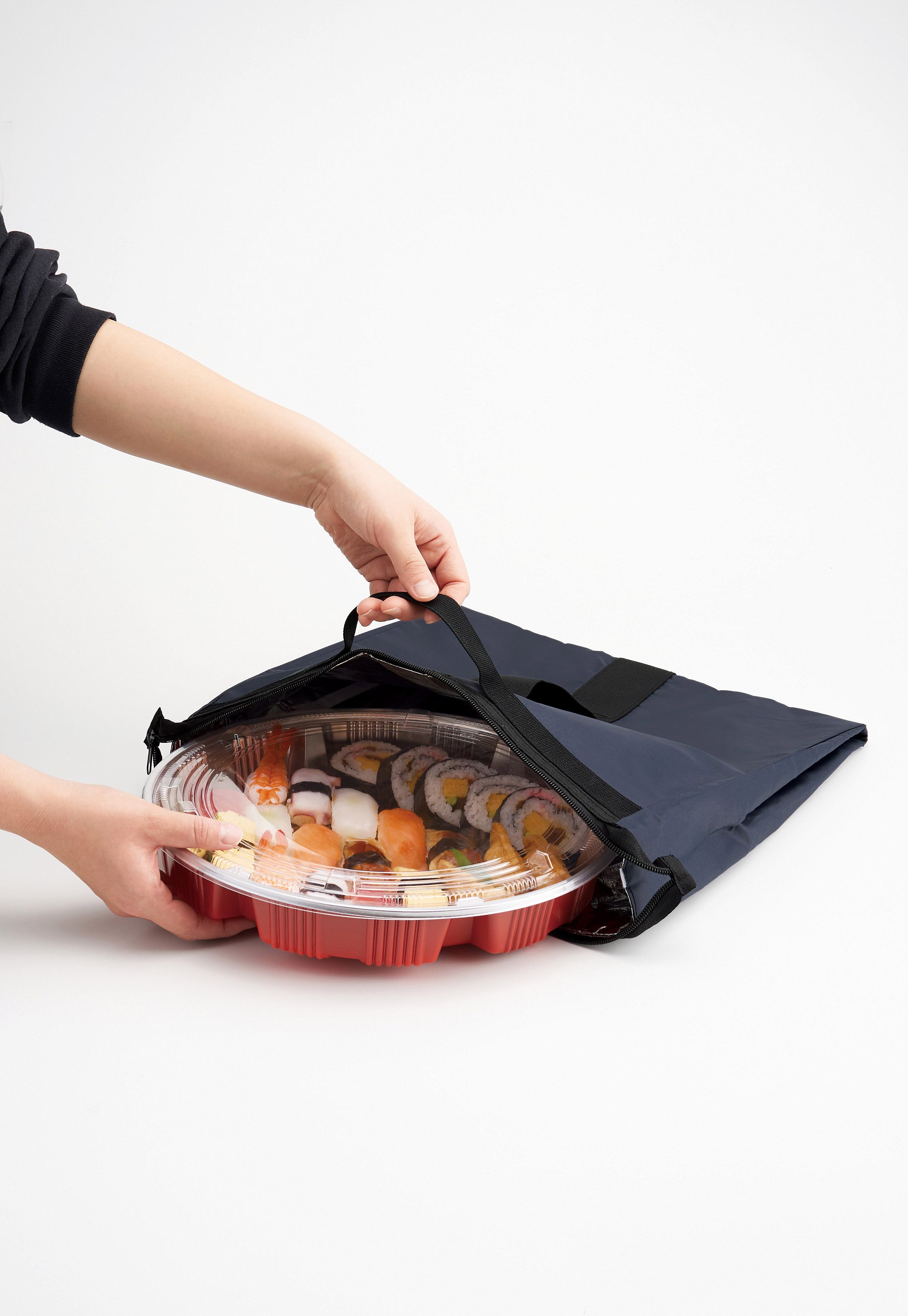 お寿司やピザなど、平らで大きなものを水平に持つことができて大変便利です。テイクアウトが増えた、今のニーズを捉えたバッグです。