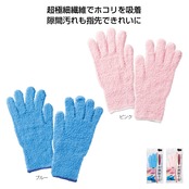 隙間汚れも指先できれいにできるマイクロファイバー素材のお掃除手袋です。