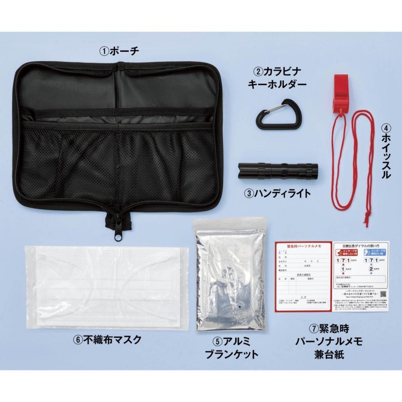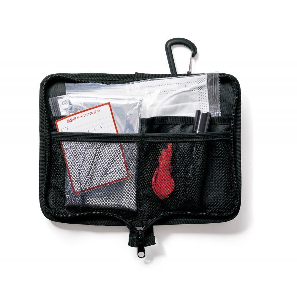 常備薬やカード類など自分なりに必要なものをセットしておけるポーチ入り。