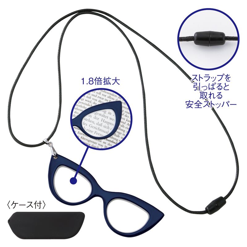 片手でさっと取りだせる!ネックストラップ付ポケットメガネ型ルーペ(ケース付)