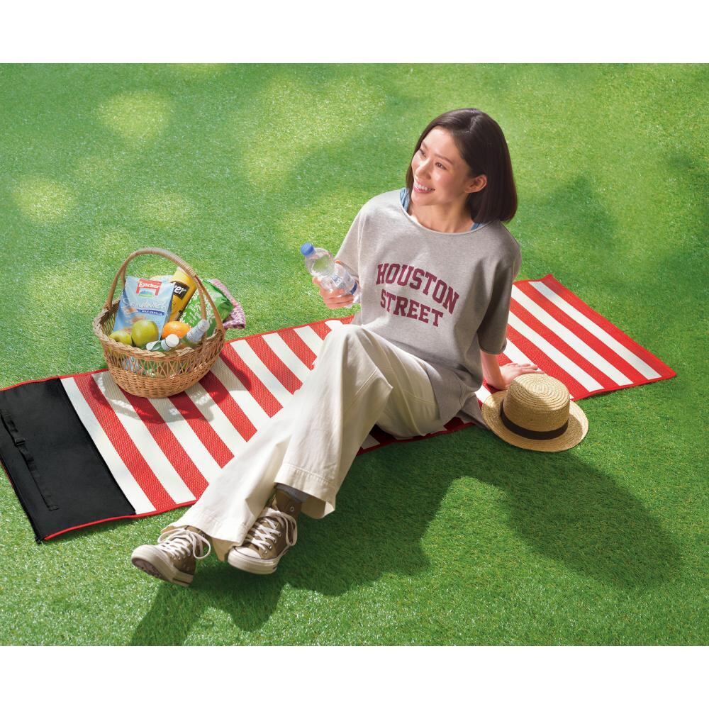 並んで二人で♪一人で寝そべって♪くるくる巻いてファスナーを閉めればコンパクトに肩掛けもできます。