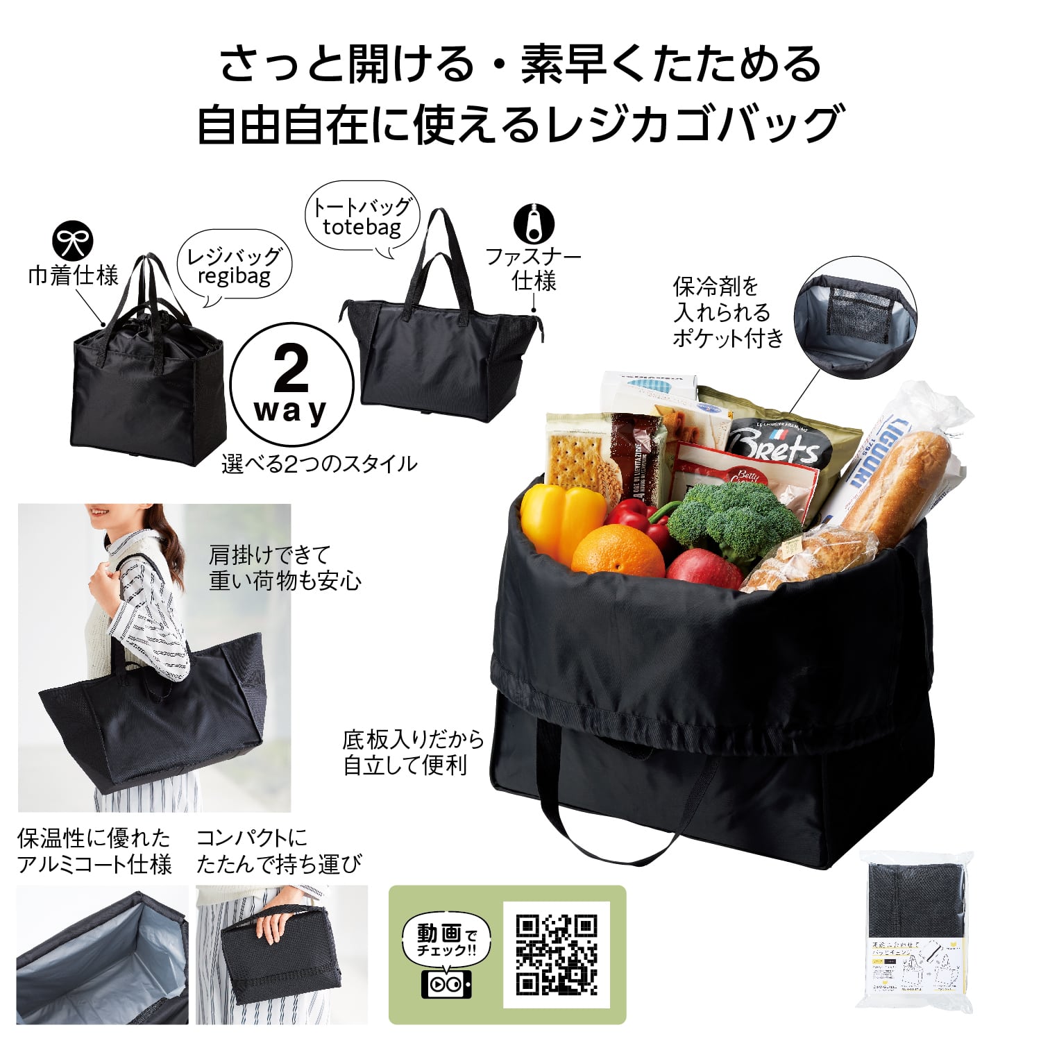 アルミコート仕様!レジバッグにもトートバッグにもなる大容量エコバッグ 2WAY保冷温バッグ