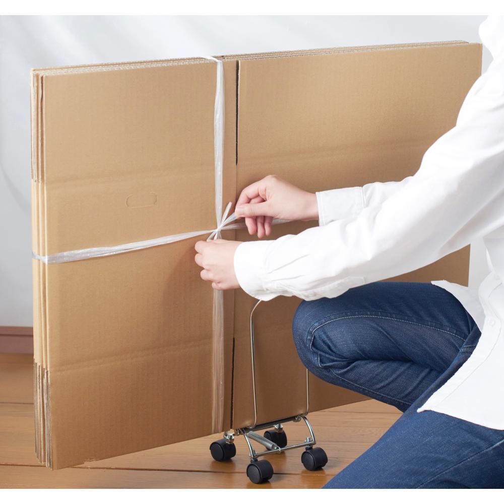 床から浮くので紐で束ねやすく、キャスター移動やハンドキャリーで玄関や集積場所への移動もラクラク!使うほどに便利さを実感できるアイテムです。