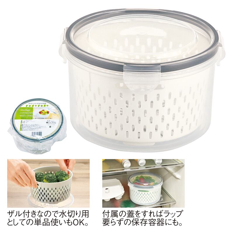 カット済みの野菜は水切り後そのまま容器へ入れてすぐに冷蔵庫で保存できる便利キッチンウェア。