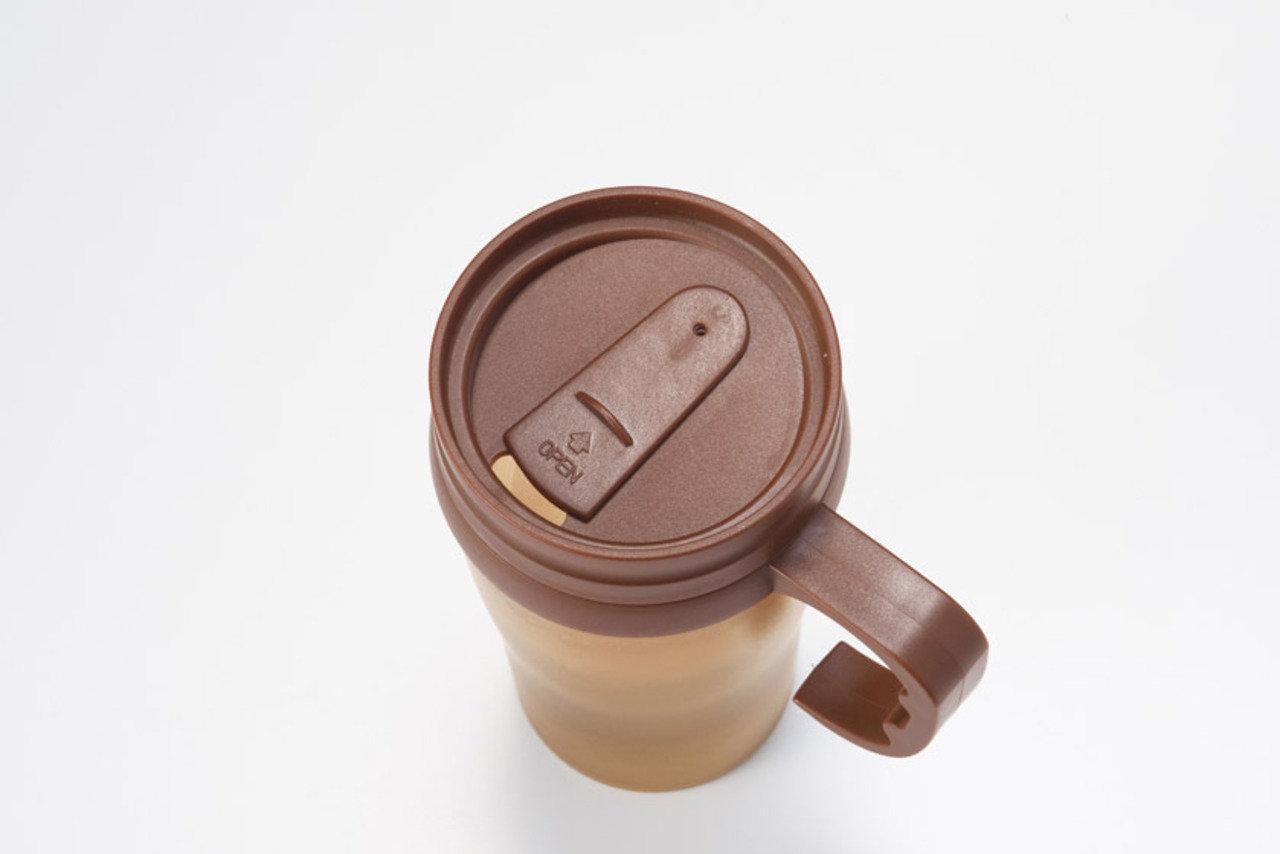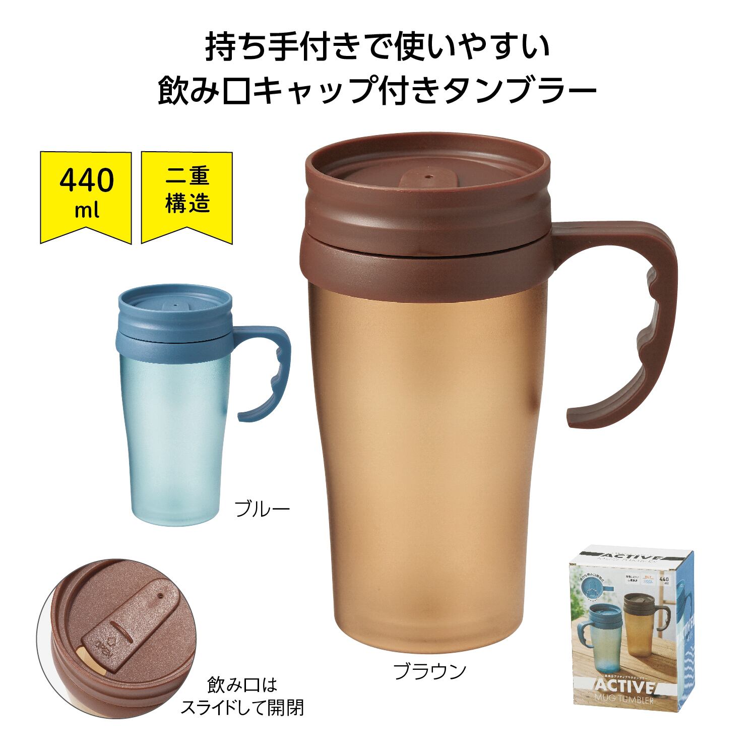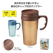 持ち手、飲み口キャップ付き!二重構造タンブラー