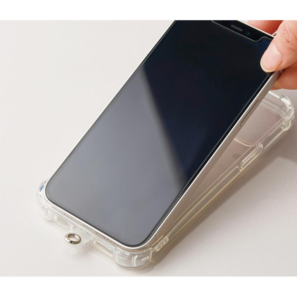 スマホの本体とカバーの間にシートを挟み、ケーブル穴から凸部分を出してセットします。