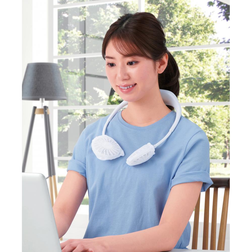 調理時やテレワーク時に!風量の調整が3段階可能な首掛けタイプのファンです。