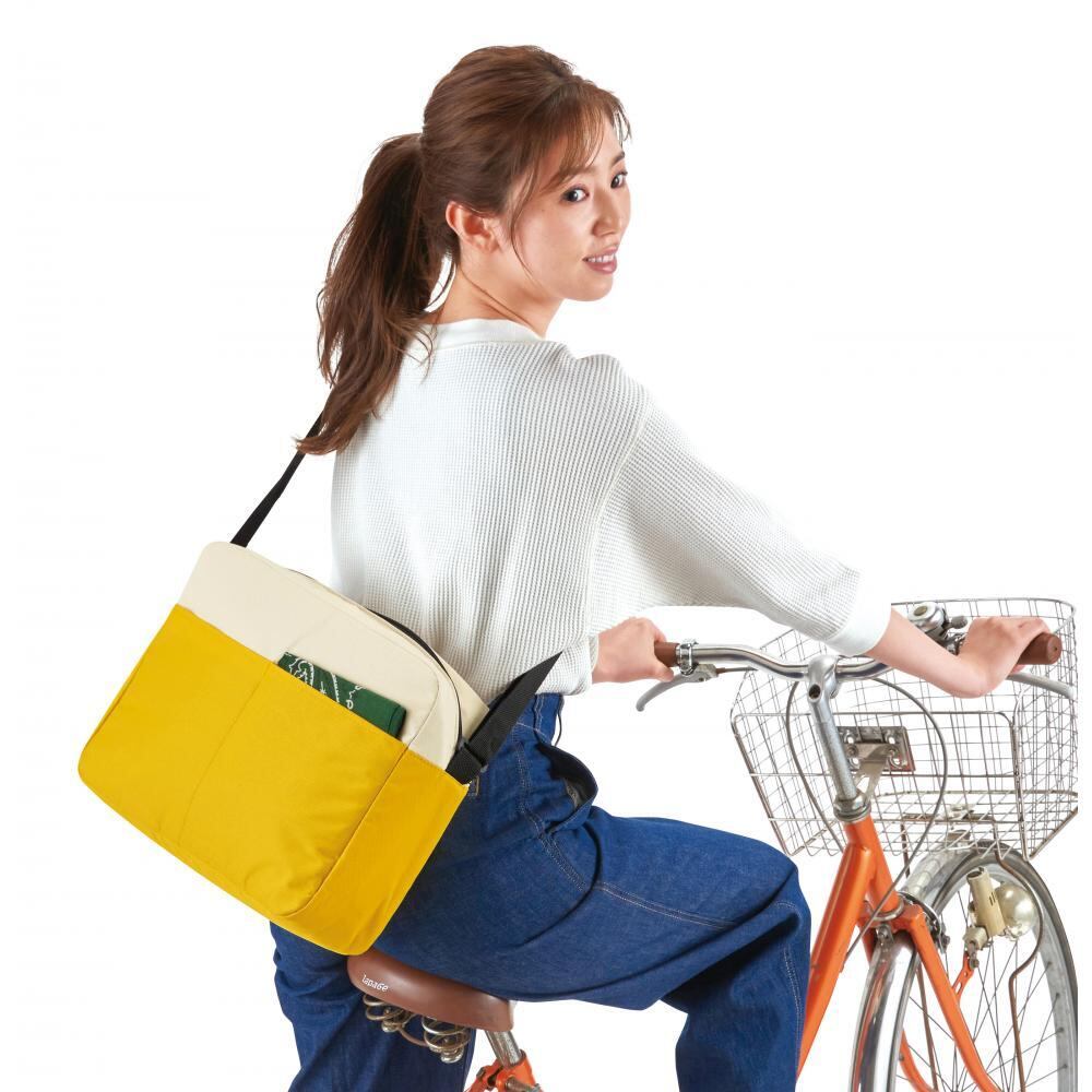 両手がふさがらないショルダータイプは自転車や傘の日でもラクラク!