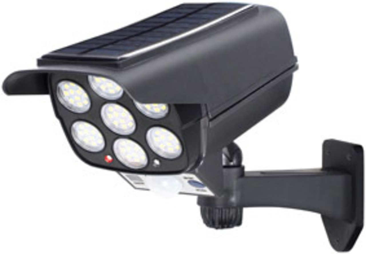 不審者を威嚇!【ソーラー充電式 監視カメラ型 人感LEDライト】