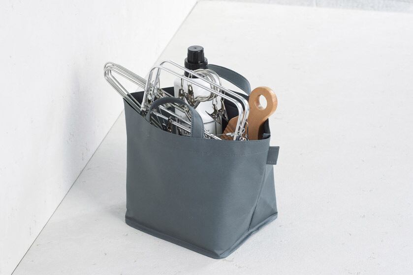 フラップ付きで目隠しもでき、自立するので収納アイテムとしても活躍します。