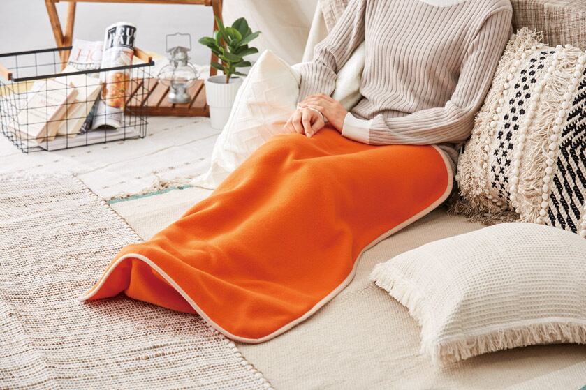 足を入れて冷えを防ぐ足ポケット機能付きのブランケット。