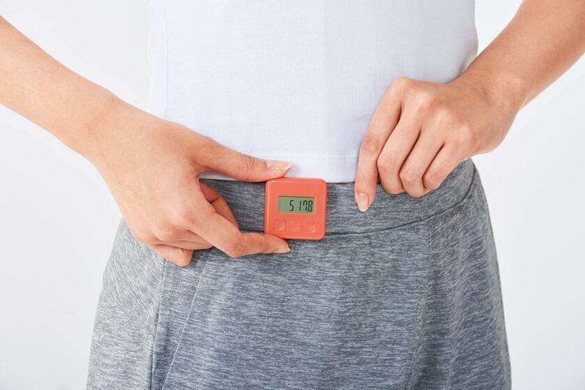薄くコンパクトなデザインで携帯しやすい万歩計。