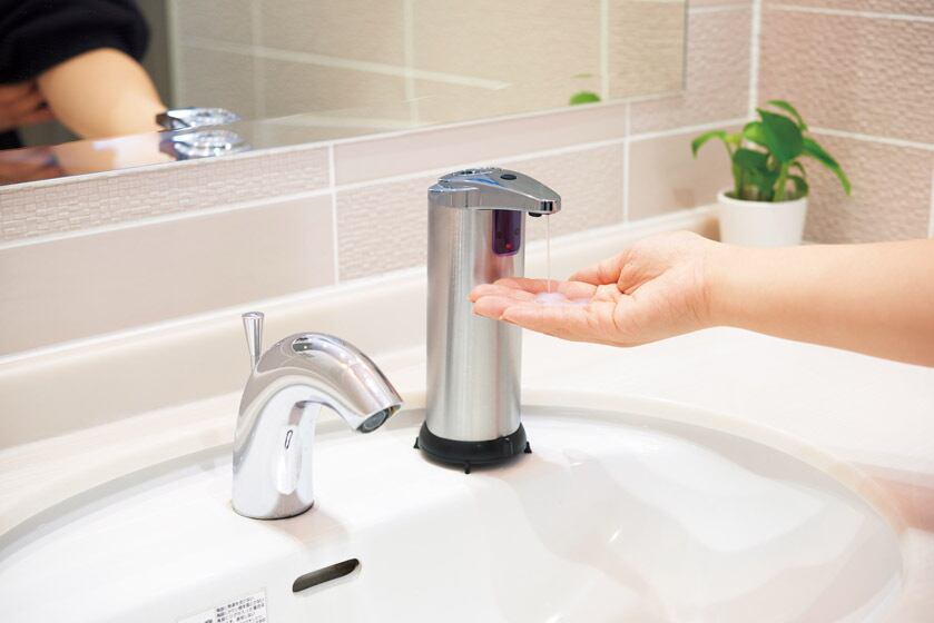 手をかざすだけで適量が自動で出るオートディスペンサー。