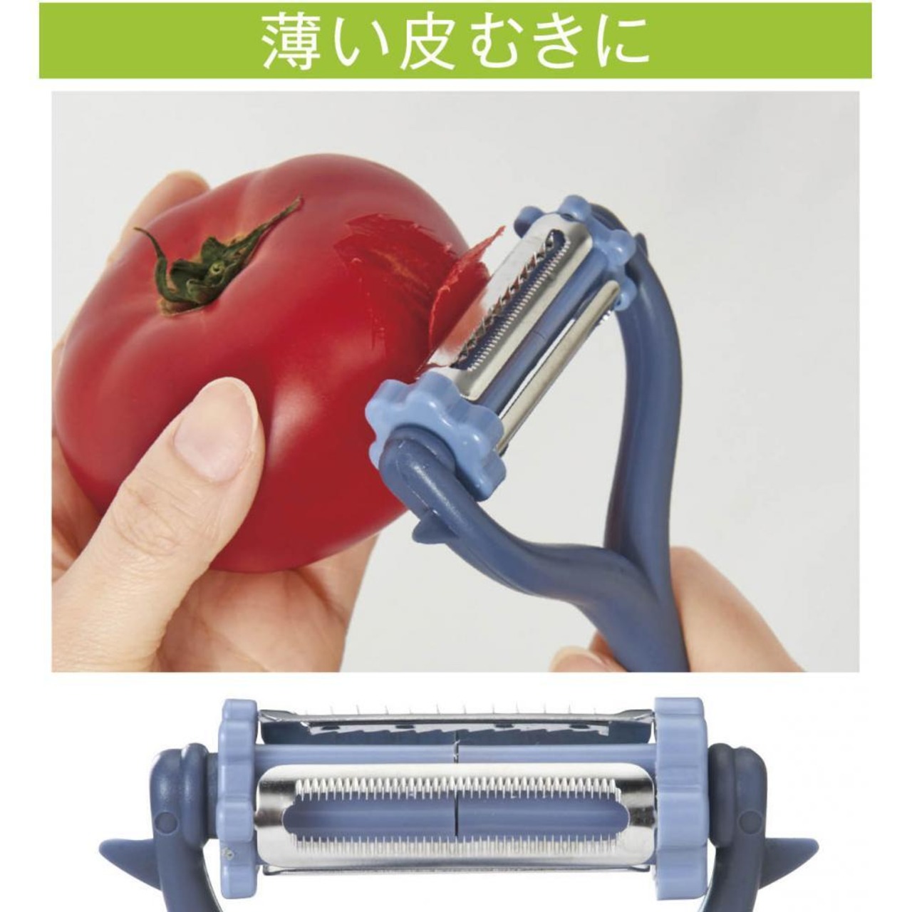 ホイールを回すだけで刃を切り替えられ、多彩な用途に使える多機能ピーラーです。