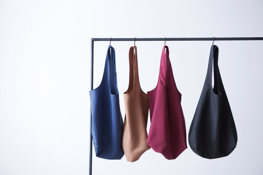環境意識の高い再生PET100%使用生地を使った、SDGs向きの大きな買い物バッグ。