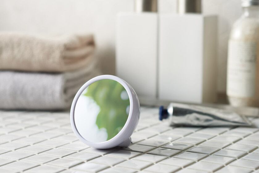 鏡にスッと浮かび上がる表示がおしゃれで機能的です。