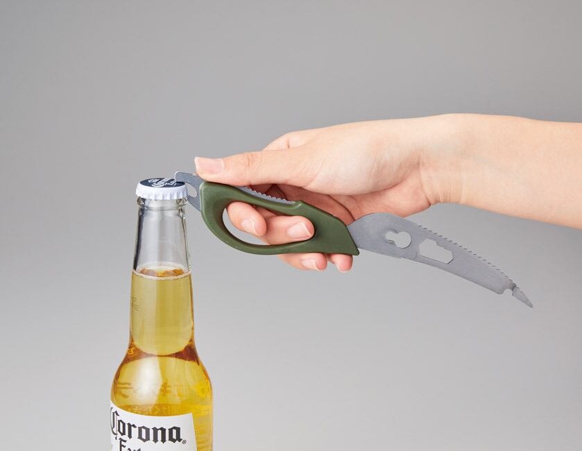 通常のはさみ機能以外に、はさみを分解するなどしてナイフやオープナー、魚のウロコ取り、栓抜き、さらにはマイナスドライバーやレンチまで!