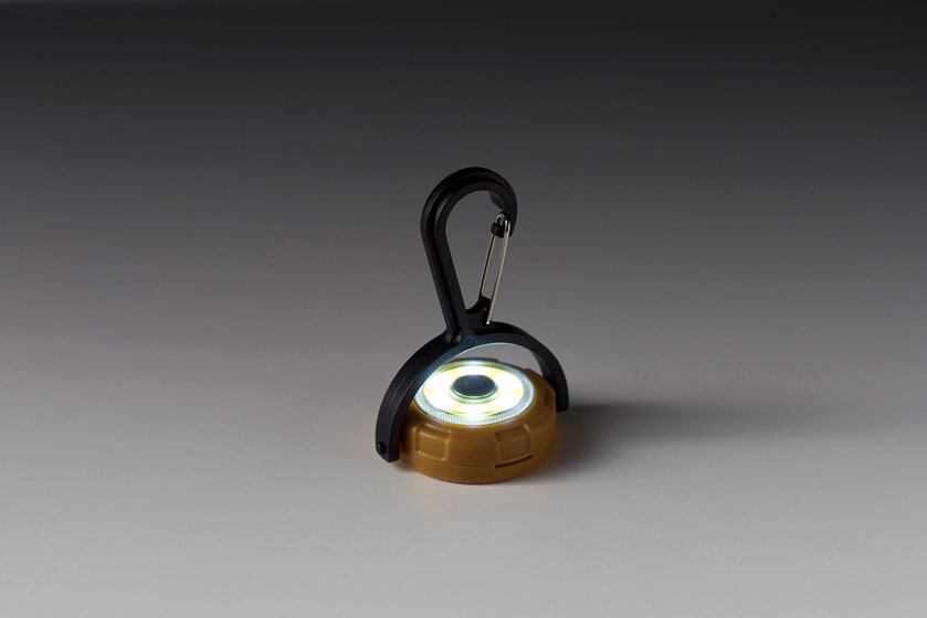 360度回転する仕様で、アウトドア、防災、ペットのお散歩ライトなど、さまざまな用途で活躍します。カラビナ付きで持ち運びがしやすいのも便利です。