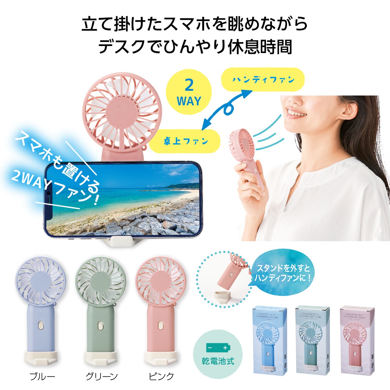 「スマホスタンド付き ハンディ&卓上 2WAYファン」