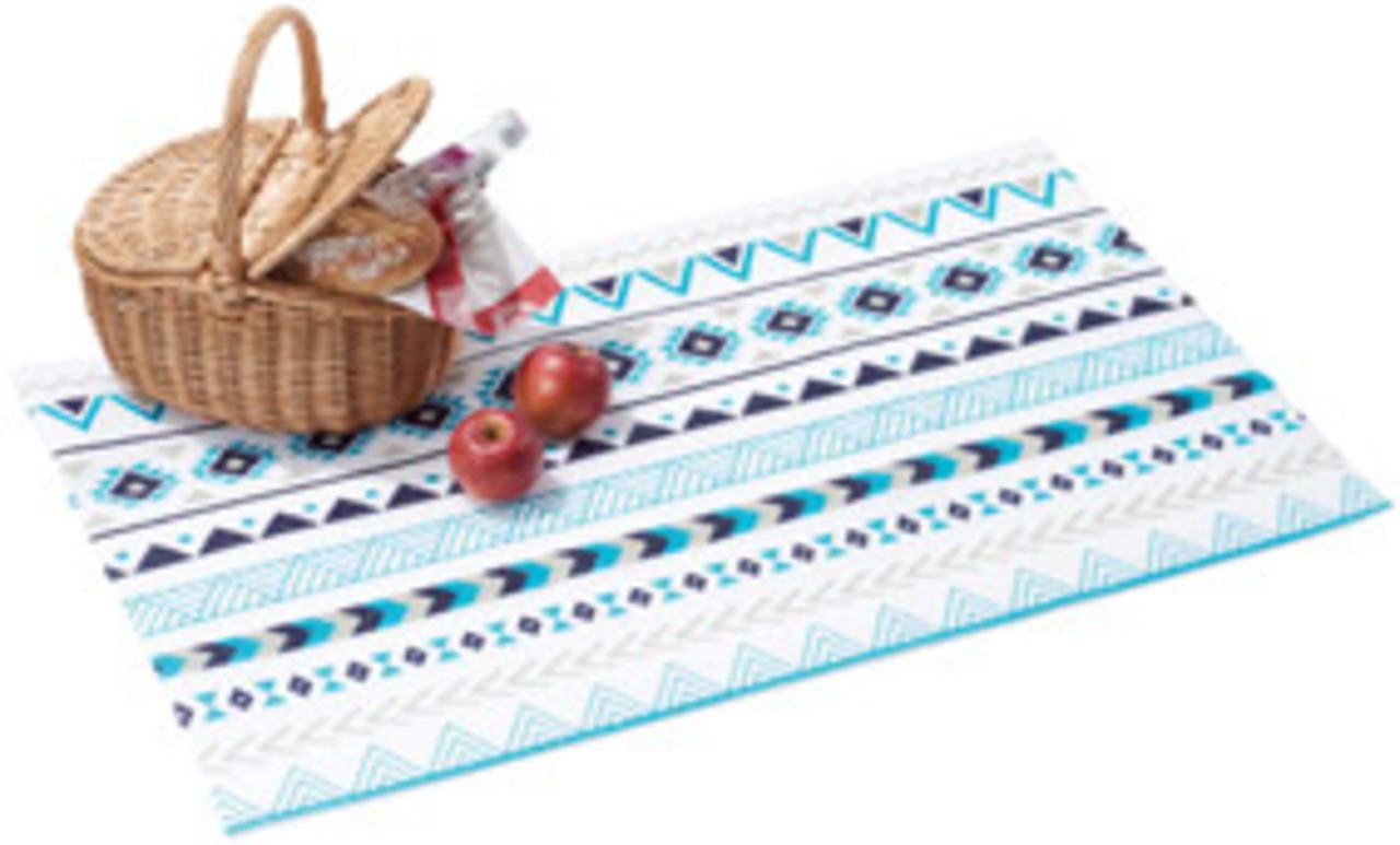 アクティブ感漂うアウトドアテイストのパターンをあしらったレジャーシート。