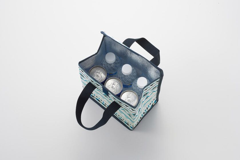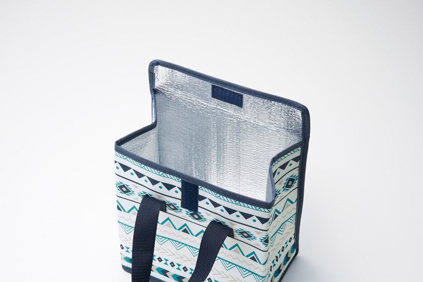 爽やかなアウトドアパターンをあしらった保冷温バッグ。