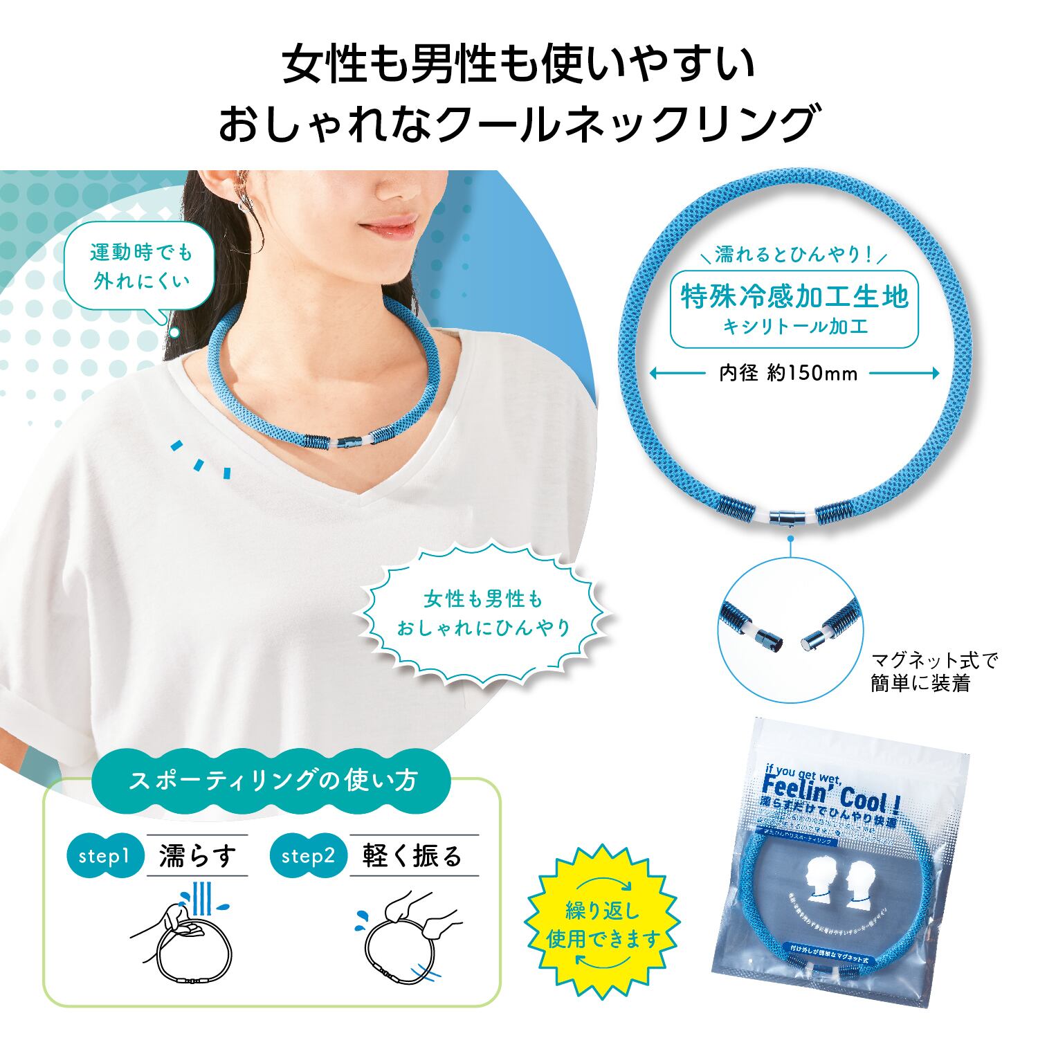 首元簡単ひんやり 「マグネット式スポーティリング」