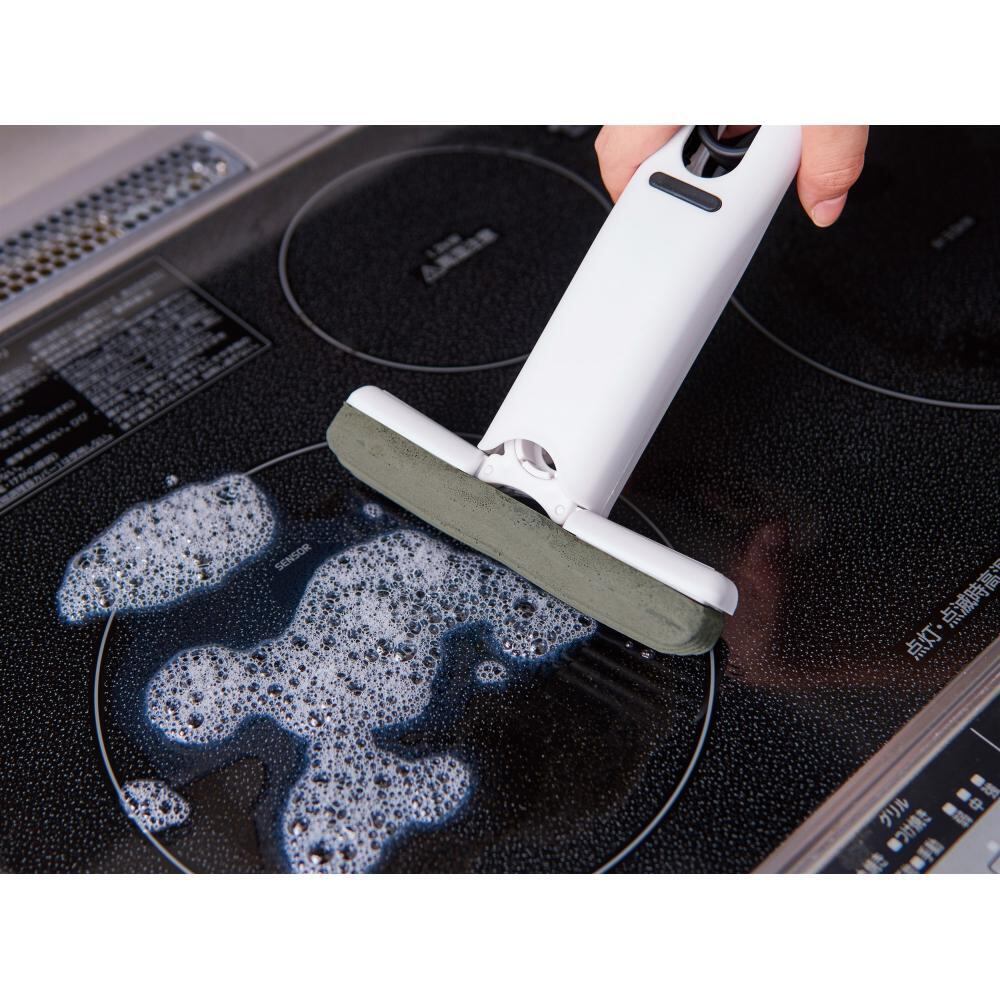 お風呂場や窓のカビ対策にも使え、濡れたモップはレバーを引いて水切り。