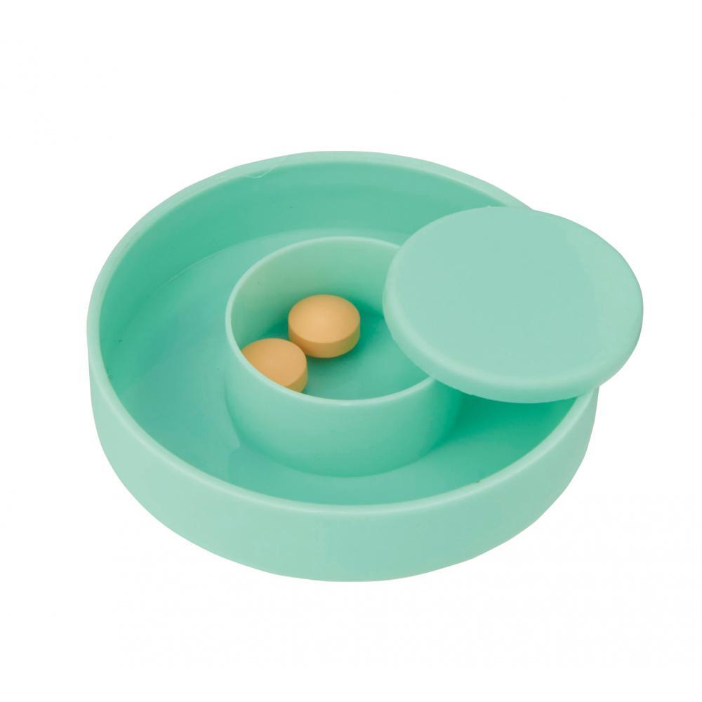 フタの裏側にはピルケースが付いており、薬やサプリメントを持ち運ぶのに便利です。